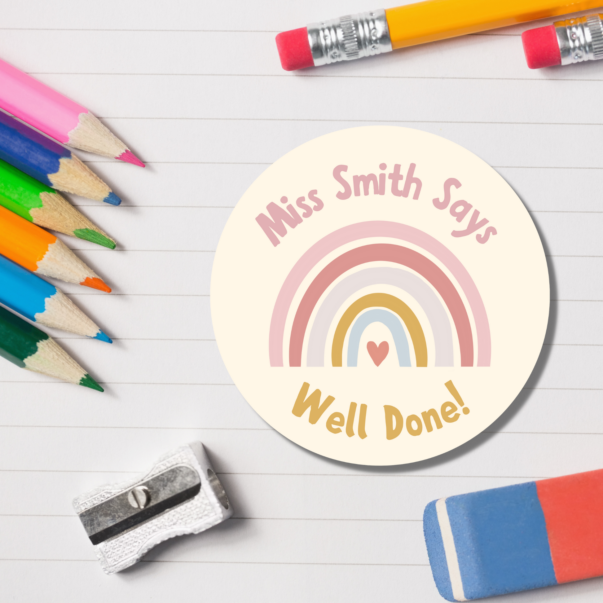 Rainbow Teacher Reward Stickers - Well Done! Glossy Finish