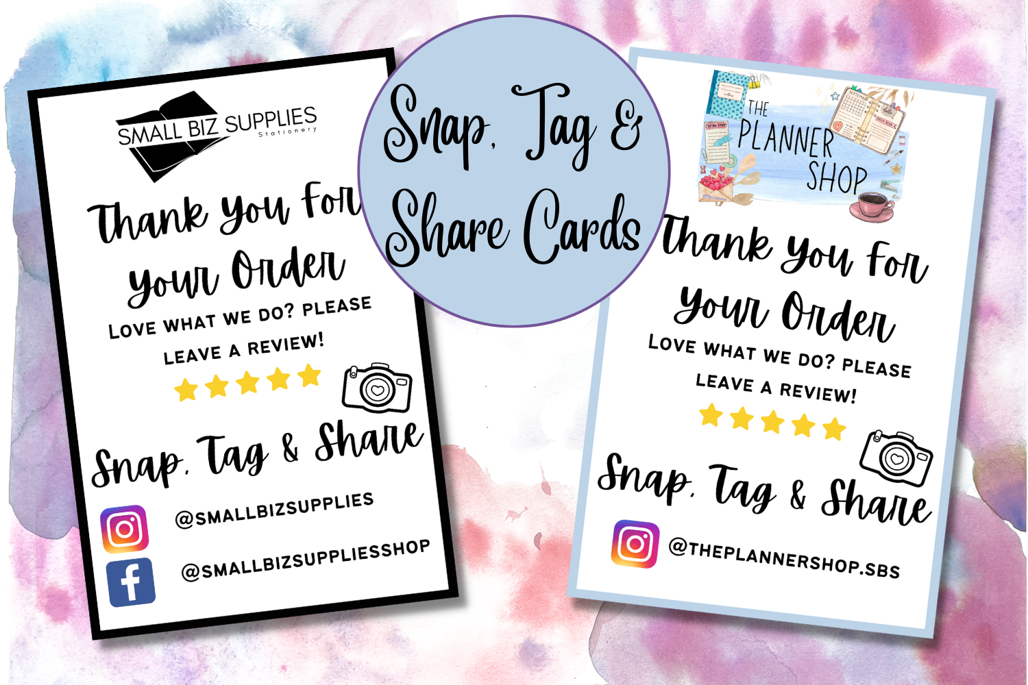 Please email your logo and social media account handles to sales@smallbizsupplies.com with your order number.