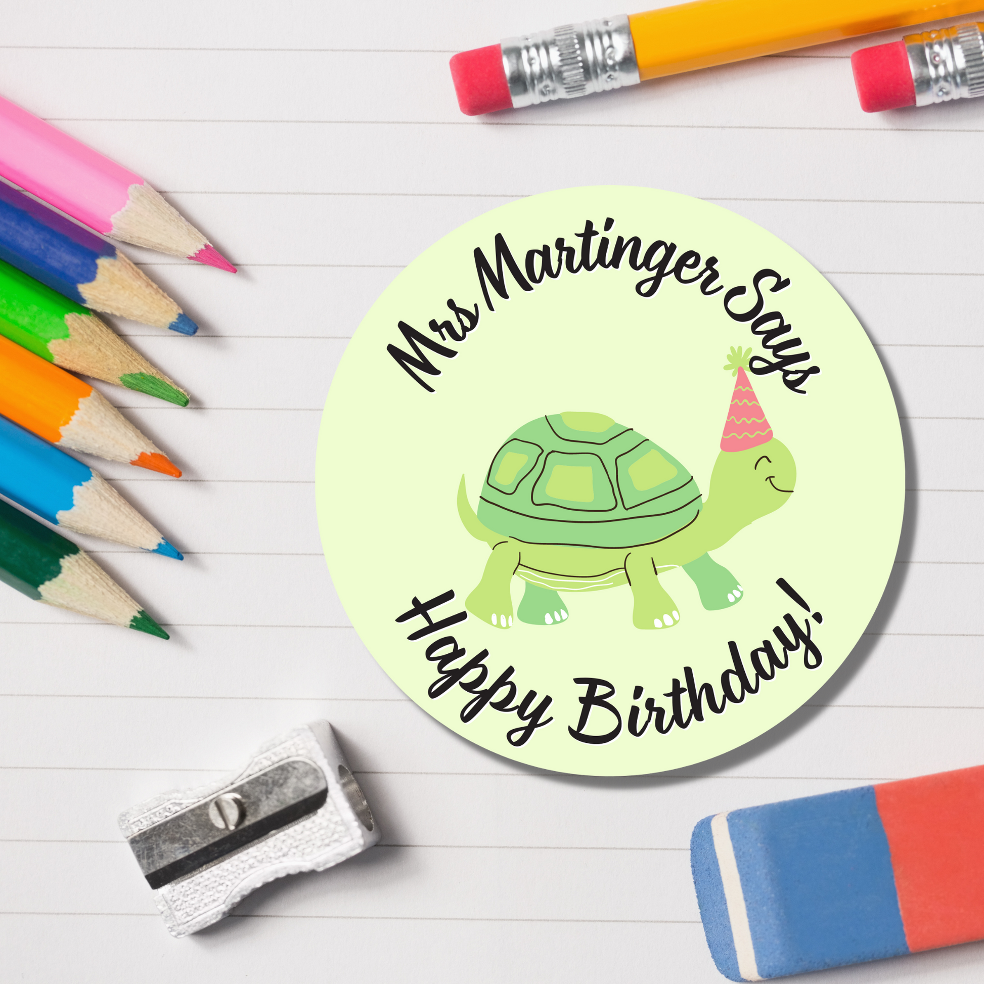 Turtle Teacher Reward Stickers - Happy Birthday - Glossy Finish
