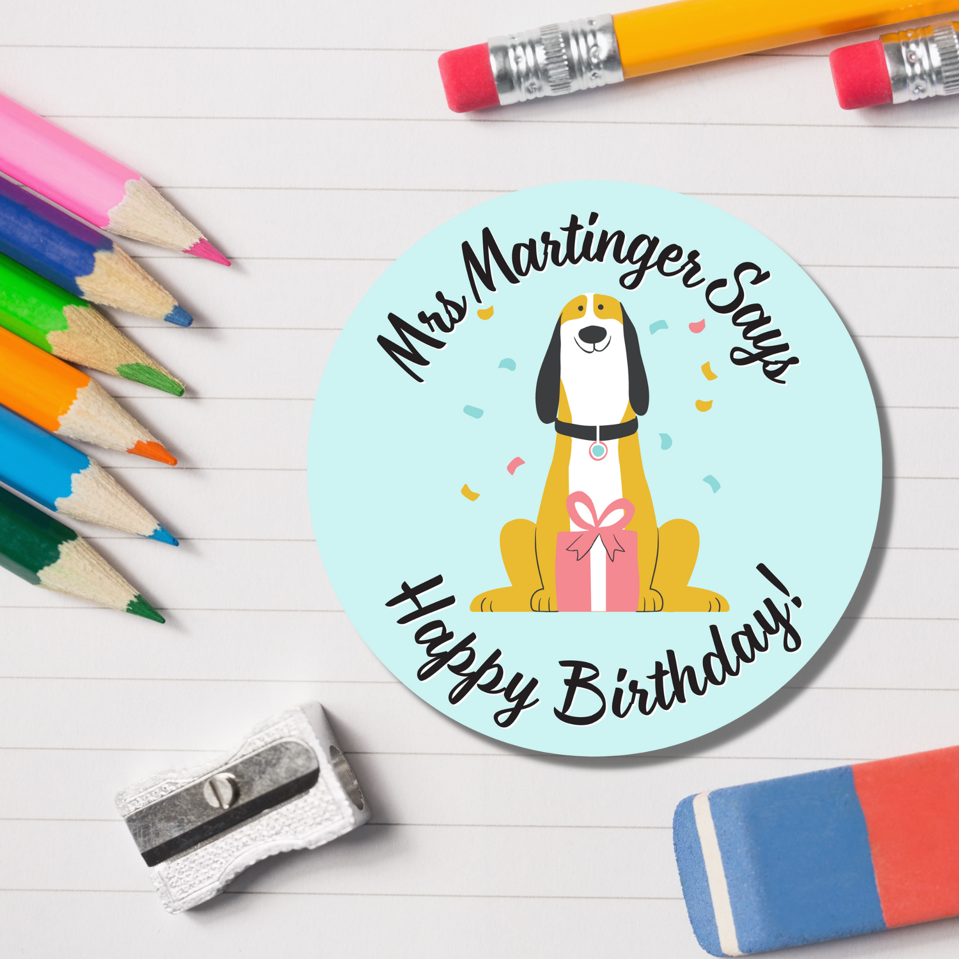 Dog Teacher Reward Stickers - Happy Birthday - Glossy Finish