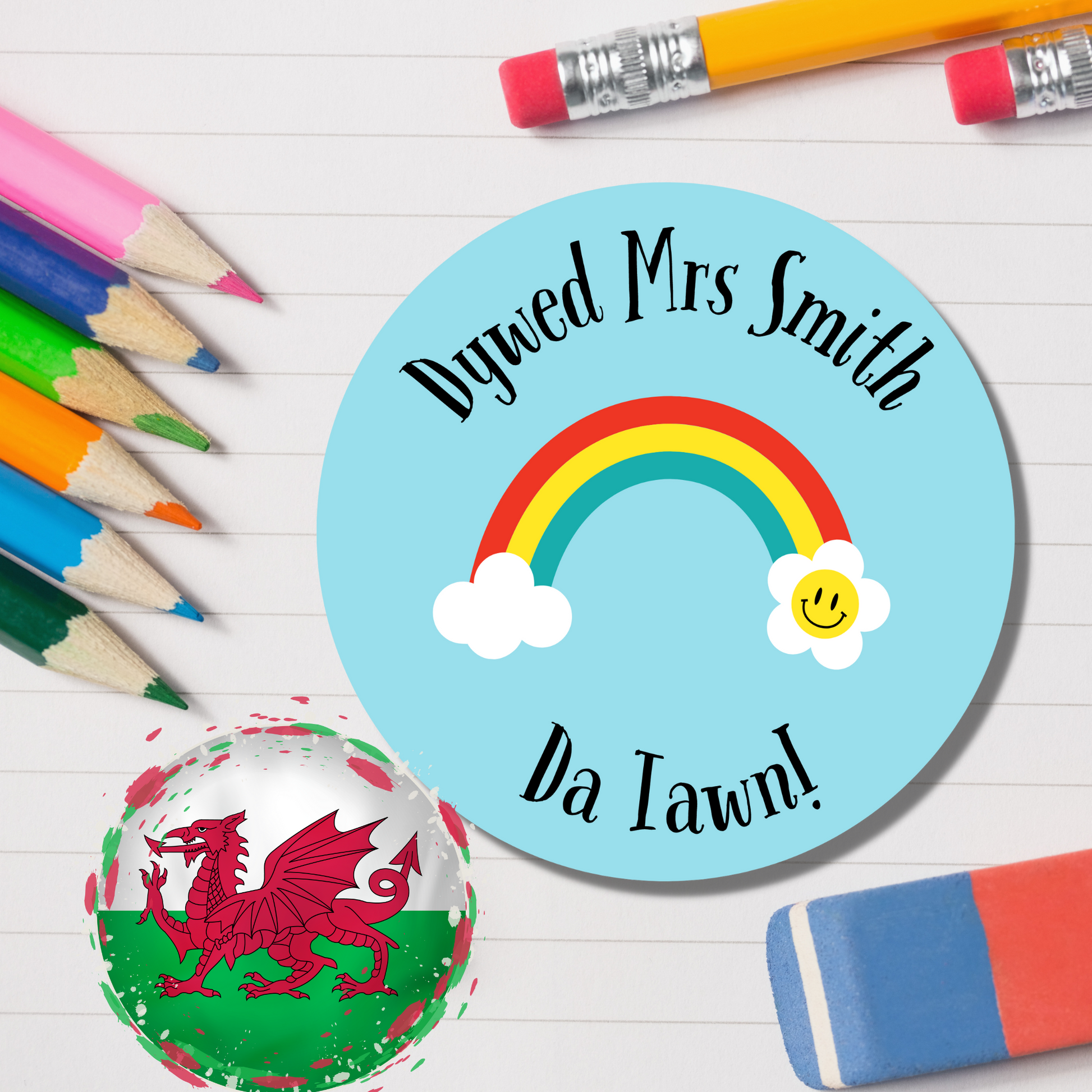 Welsh Personalised Teacher Reward Stickers - Rainbow